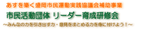 ![]() 組織的に市民活動を継続していくために大切なものは、組織の力を引き出し、まとめていくリーダーの存在だといえます。そこで、この事業では、リーダーの育成を目指し、リーダーに必要な資質である「人の力を引き出す力」「多くの人の意見をまとめていく力」を身につける研修会を開催し、市民活動リーダーの育成を目指します。 市民活動団体のリーダーとして、チームの一人ひとりの力を最大限に引き出し、その力を結集するためにはどのようにすればよいのか。そのために必要とされる、コーチングにおける相手のやる気、能力を引き出すコミュニケーションスキルと、ファシリテーション型会議における全員で討議し合意を形成しながら意思を決定していく方法を身に付けるセミナーを開催します。 市民活動に関る人、興味のある人など、どなたでもご参加頂けます。ぜひ、この機会にコーチングとファシリテーションを学んでみてください。 【平日コース】 2月 8日 (木)18:30〜20:30 コーチング講座 2月15日(木)18:30〜20:30 ファシリテーション講座 2月22日(木)18:30〜20:30 ワークショップ体験 【週末コース】 2月17日(土)10:00〜17:00 コーチング・ファシリテーター講座 ワークショプ体験 【会 場】サンライフ盛岡(盛岡市仙北2丁目4-12) 【受講料】無料 【定 員】先着 20名 平野 順子 氏 PHP認定 上級ビジネスコーチ、(財)生涯学習開発財団認定コーチ 現在、パーソナルコーチとして、マンツーマンのコーチングによりクライアントの目標達成や課題解決をサポートしているとともに、コーチングを取り入れたコミュニケーション講座やファシリテーション講座を開催している。 ―みんなのやる気、能力を引き出すコミュニケーションを身につけよう! ・ 人のやる気、能力を引き出すコーチングとは? ・ コーチングにおける人間観とリーダーのあり方 ・ 相手との信頼関係を築く話の聴き方 ・ 相手の自己肯定感を高めるメッセージの伝え方 ・ 具体的な行動を引き出す問いかけの仕方 ―メンバーの納得性を高める合意形成の方法を身につけよう! ・ チームが最大限に力を発揮するためには? ・ 参加型会議、ファシリテーションとは? ・ 進行役、ファシリテーターの役割 ・ 会議をデザインするポイント ・ 討議を促進させ、論点をかみ合わせるコツ ・ 対立を解消して、合意を形成する方法 ―相手や自分のコミュニケーションのタイプを知り、会議の場に活かそう! ・ 4つのコミュニケーションタイプの特徴 ・ 各タイプに対する接し方 ・ ワークショップ体験 |